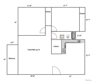 - Area, sq ft: 880.0 sq ft